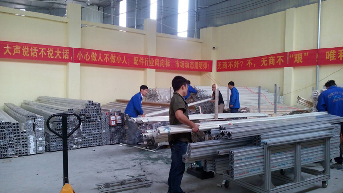 五一小長(zhǎng)假來(lái)了,此時(shí)的您可能在和伙伴討論去哪里旅行;世界那么大,但在我們心目中顧客最大,您的滿意是我們?yōu)橹畩^斗的目標(biāo)。 今日(2016.4.29)是5.1節(jié)放假的前一天,我司將有大批量產(chǎn)品出貨(精益管,鋁型材及配件);為了客戶(hù)您假后勝利開(kāi)展工作,我司全員不顧中午休息時(shí)間,分工協(xié)作,有的切精益管,有的切鋁型材,有的攻牙,有的打包......雖說(shuō)春色迷人,我們的工作風(fēng)采也絕不遜色。(組圖)