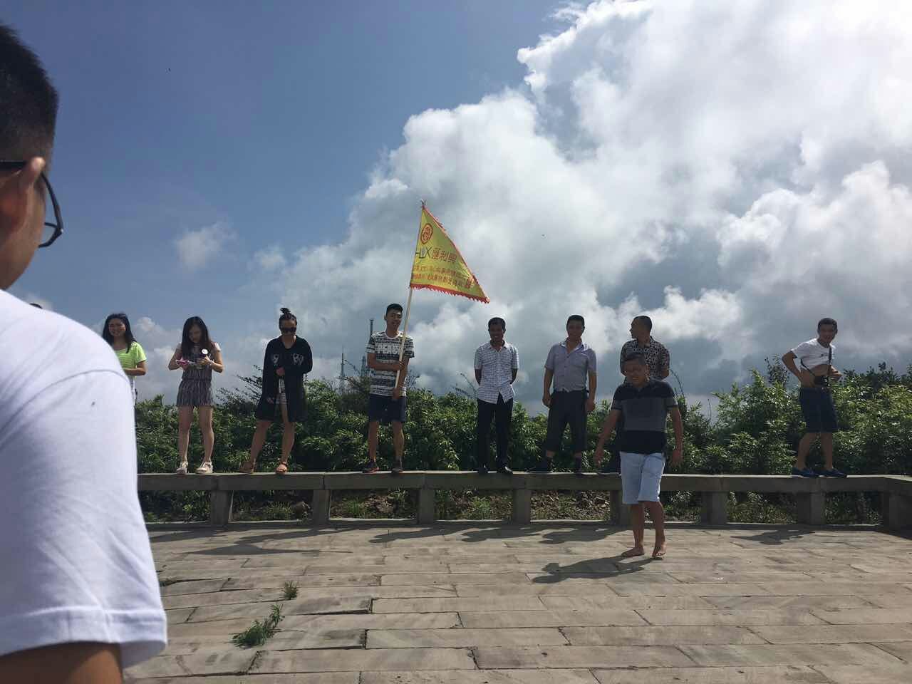 藍天白云、青山綠水、花草樹木、匯利興人、匯利興旗、匯利興精神......融合如此美麗。2016年8月6日,匯利興與大自然親密接觸、陶冶情操自駕游活動正式起程。我司4輛戰(zhàn)車出動,載著“戰(zhàn)士們”一睹喀斯客獨特地貌險麗,疾馳在蜿蜒屈曲的公路上。登上萬佛頂最高峰,戰(zhàn)士們心曠神怡,不由自主地唱起那首匯利興之歌。戰(zhàn)旗在山頂上飄揚,簡直就是藍天白云最美點綴。