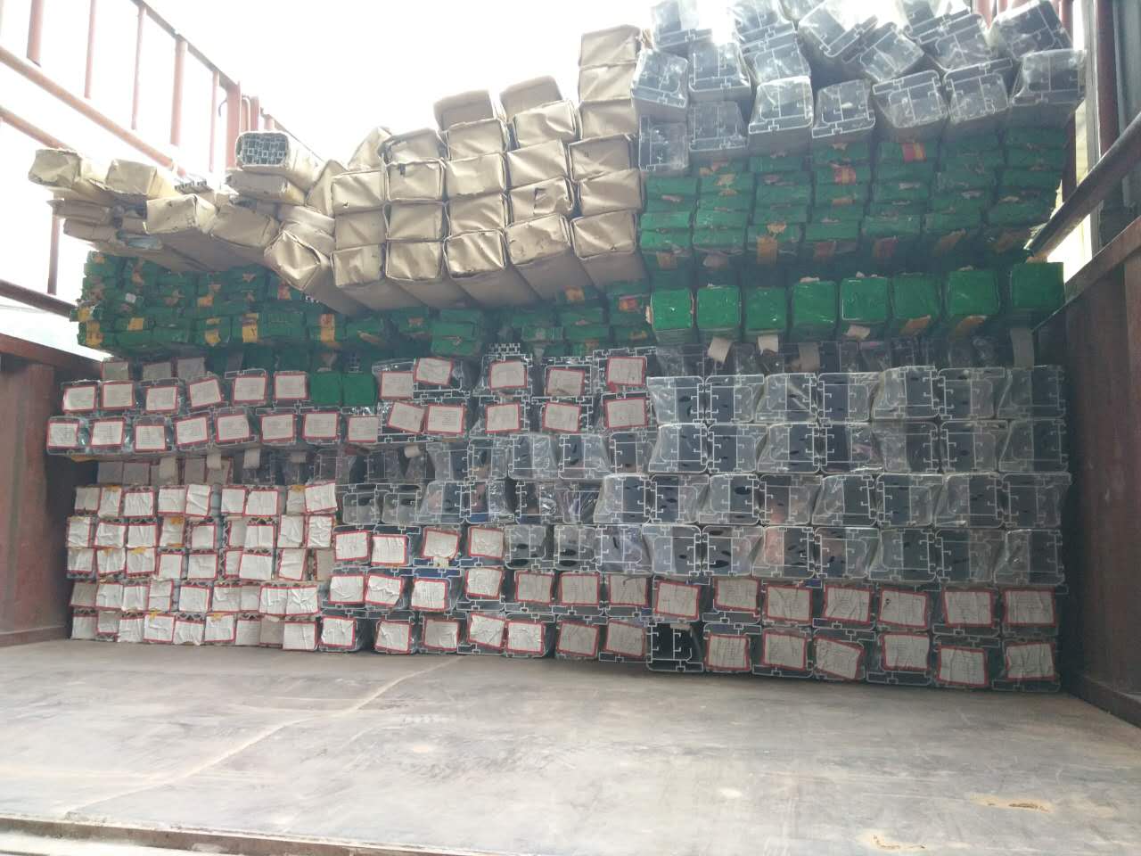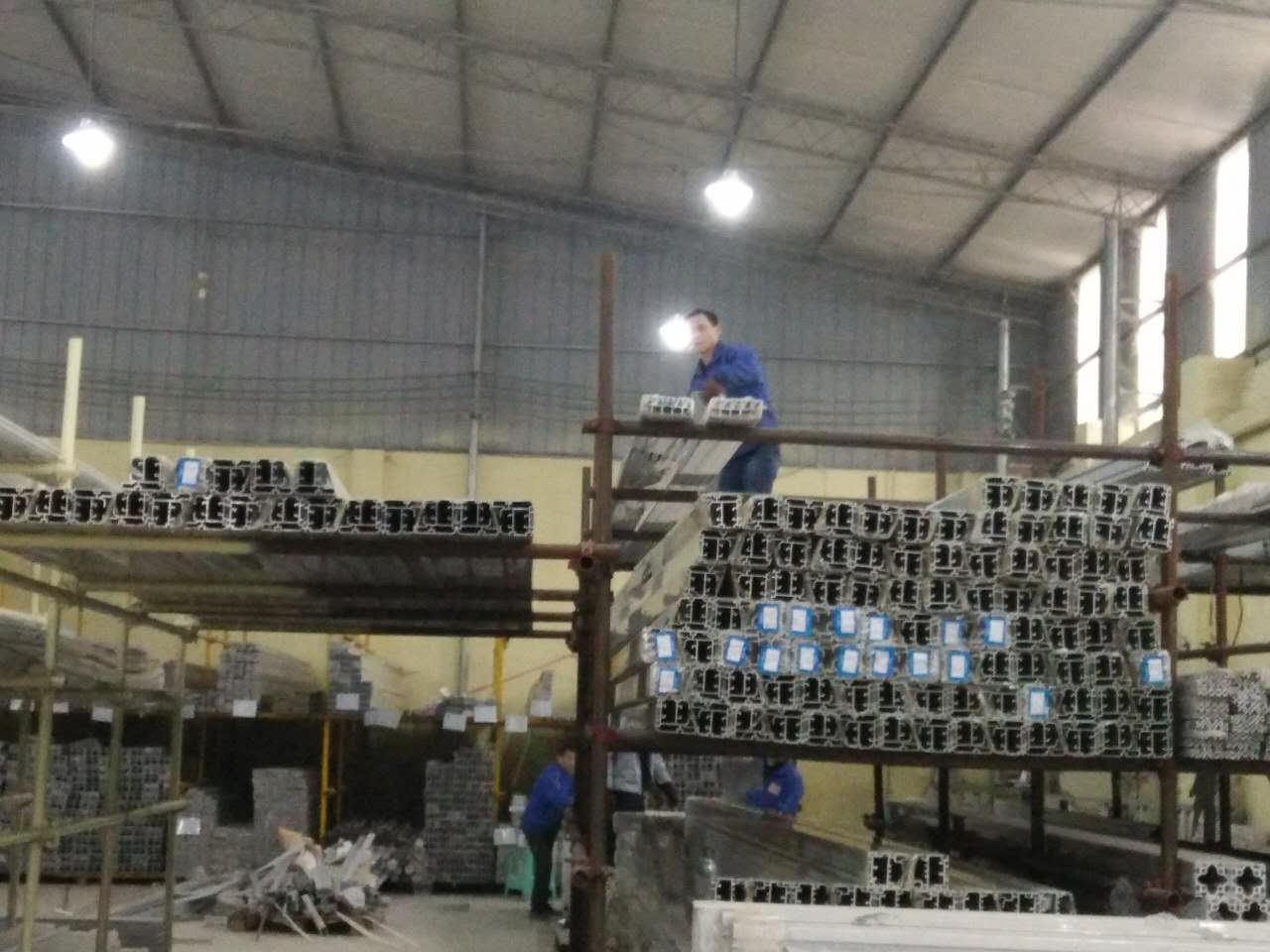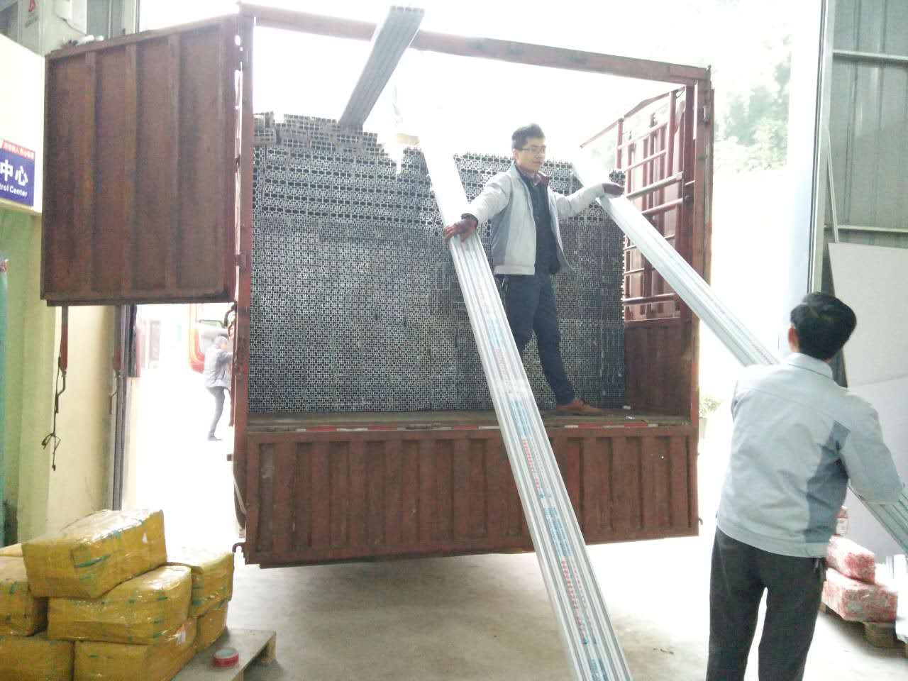 看,這一大堆鋁型材還等待著匯利興戰(zhàn)士們搬卸,在此感謝他們的付出,你們辛苦了?。?!