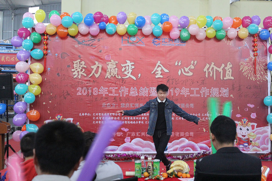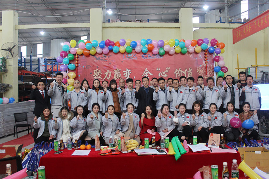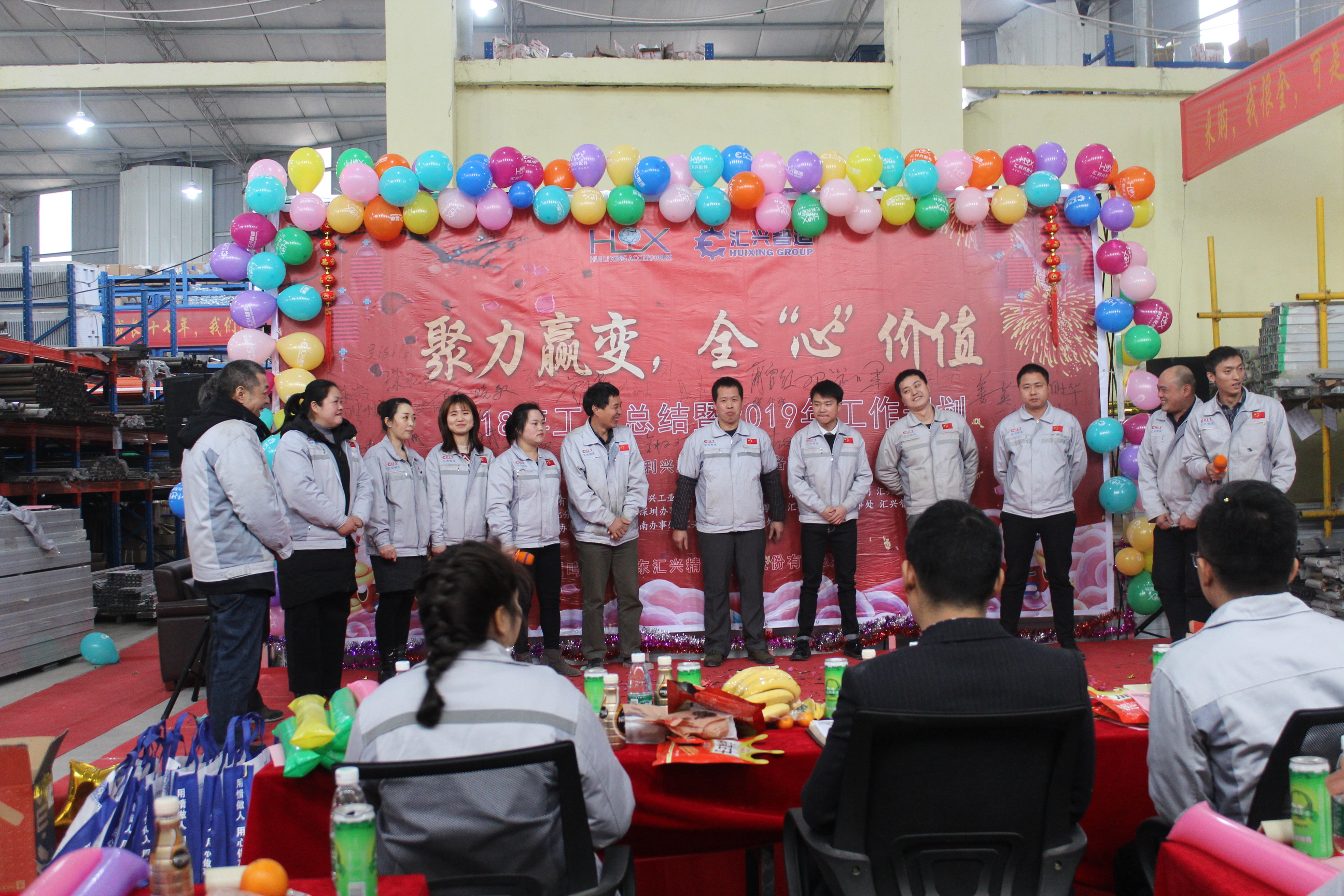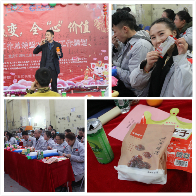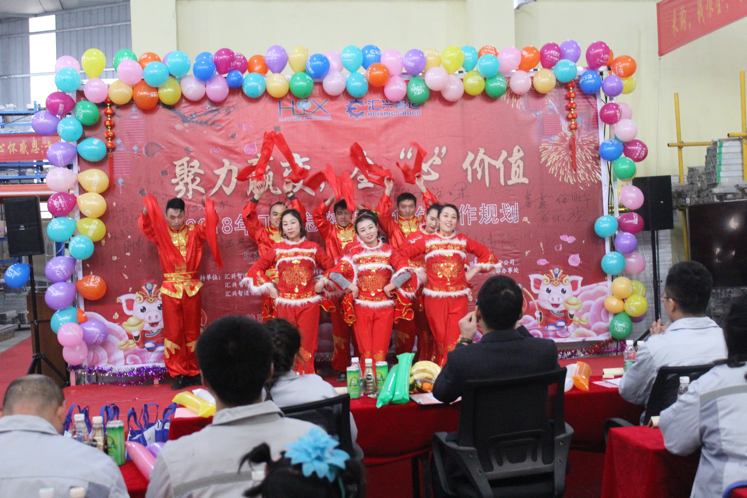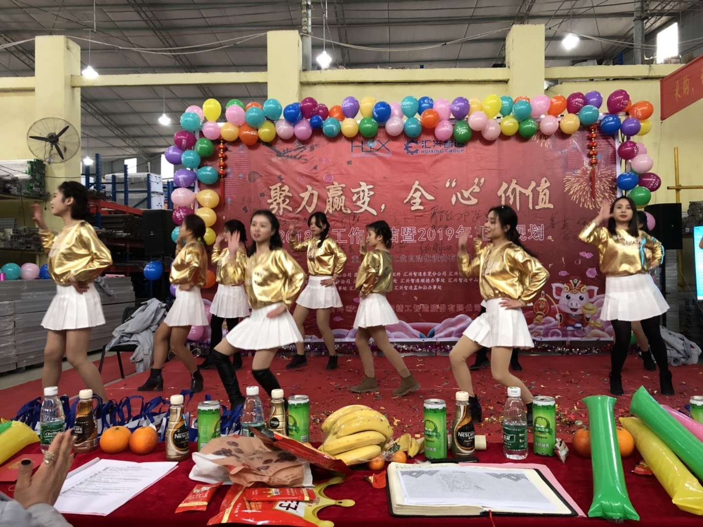 踏歌起舞辭舊歲,歡聲笑語迎新年。2019年1月19日下午,匯利興(重慶)公司在廠內舉行了一場以“聚力贏變,全心價值”為主題的年終總結大會。會議主持人:石樂歡、熊學斌,參會人員:全體匯興家人。 56個民族56朵花,56個民族是一家,家人們以苗族竹竿舞進場,濃厚的民族氣息里不泛透露出匯興人愛國也愛匯興家。