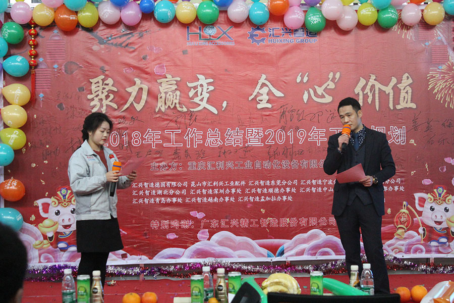 會議召開前,全體匯興人整肅衣冠宣讀企業(yè)文化,對倍加推崇的三道文化“人道、孝道、商道”行三鞠躬,擊士氣鼓。 會上,胡總作2018年工作總結暨2019年工作計劃。談到2019年每個人都應具備“三心兩力(耐心、信心、決心、執(zhí)行力、戰(zhàn)斗力)”的特質,團結一致、為了夢想勇往直前同時也感謝大家在2018年的付出與努力,并指出2018年各部門所存在的短板,進而勉勵家人們在新的一年里吐故納新、再創(chuàng)佳績。 隨著一聲“開門紅”,2018年匯利興(重慶)公司年終大會就正式拉開序幕,同時也點燃了2019年的鴻運和希望。