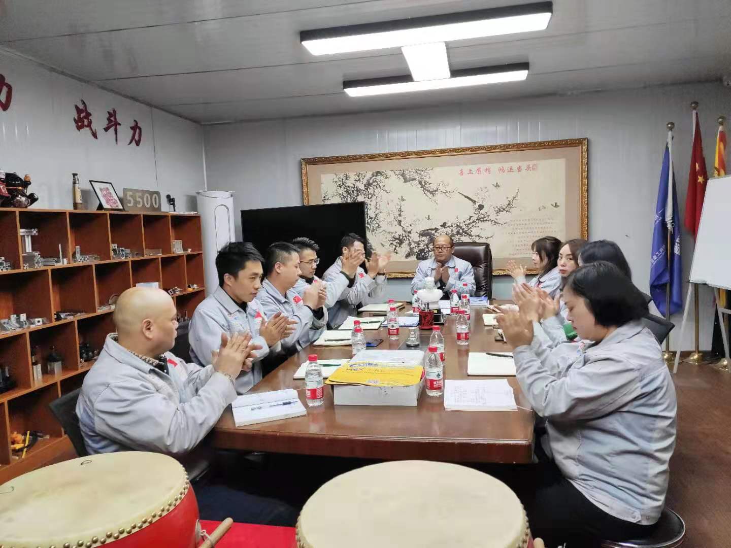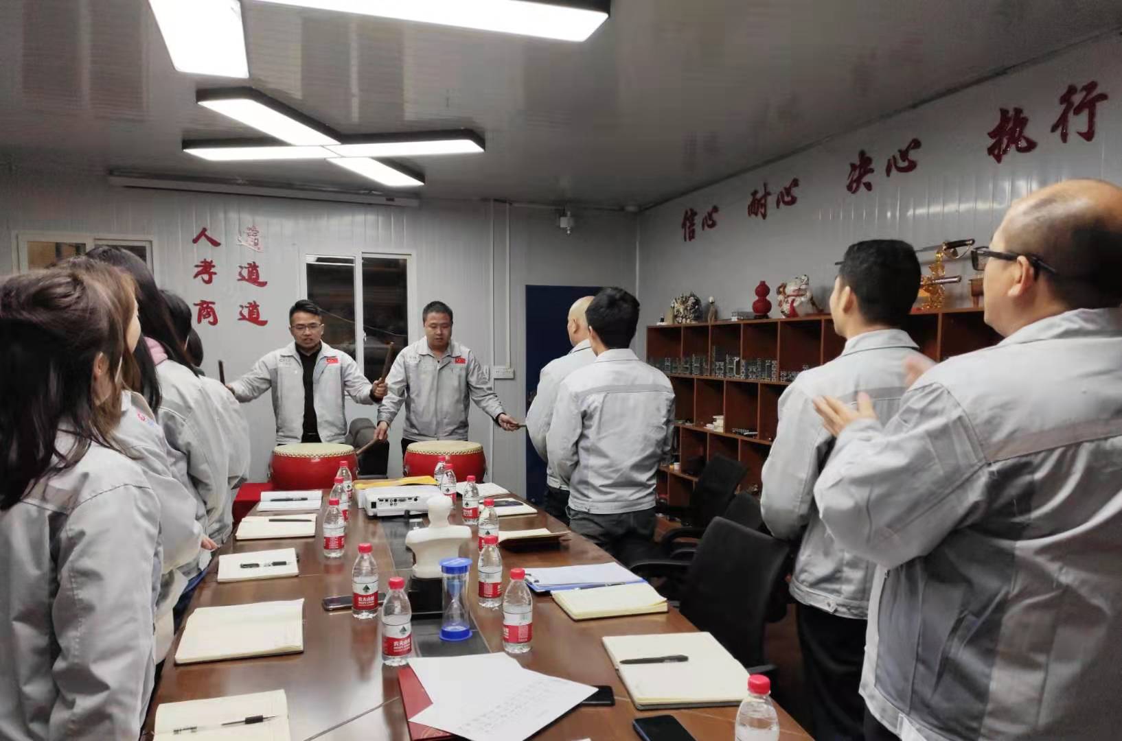 會議前,例行匯利興企業(yè)文化,兩位核心高管敲響士氣鼓,士氣比武器更重要。