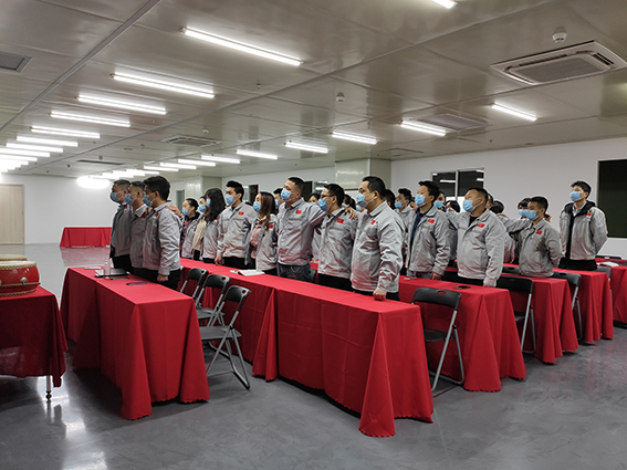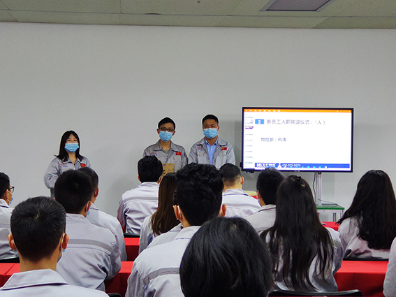 會議第一項議程,企業(yè)文化的展示。全體匯興人整肅衣冠對匯興人倍加推崇的“三道文化”(孝道、商道、人道)鄭重地鞠躬,莊嚴宣誓企業(yè)愿景:“成為全球領(lǐng)先的智能自動化產(chǎn)業(yè)鏈集成服務(wù)商”,企業(yè)使命:做受尊敬的好人,造受尊敬的產(chǎn)品,辦受尊敬的企業(yè),建受尊敬的平臺,企業(yè)精神“用情做人、用心做事”,團隊精神“忠誠團結(jié)、勤奮進取”,工匠精神:創(chuàng)于手、精于工、智于器、匠于心、品于行等。隨后由胡總經(jīng)理和張副總擊士氣鼓,士氣比武器更重要,現(xiàn)場氣氛熱烈、振奮人心。 會議第二項議程,新員工入職歡迎儀式。由常務(wù)副總徐總親自為新入職員工頒發(fā)紀念品。為公司注入新鮮血液,為團隊帶來新的生機和活力。