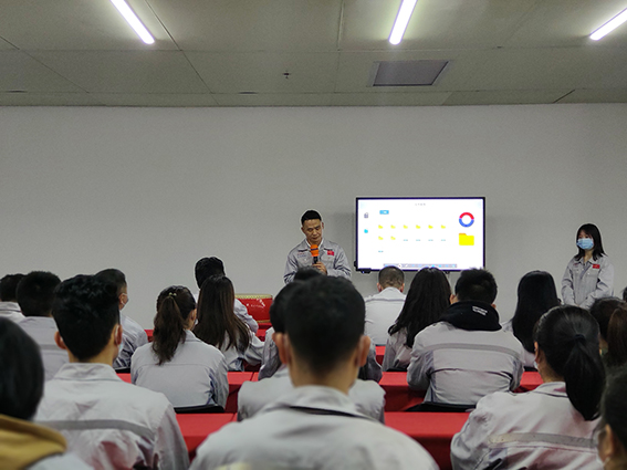 會議第三項議程,季度之星嘉獎儀式。本季度之星“工程部王顯章和物控部陳曉敏”,他們用一言一行在各自的工作崗位上做著表率;他們不辭辛苦,積極向上,工作出色,深得大家的認可,同時也感謝他們的奉獻與堅持。也正因為有這么一批堅持奉獻、恪盡職守、團結(jié)奮進的匯興人,才得以讓匯利興這個大家庭一直散發(fā)著正能量,引領(lǐng)行業(yè)市場。 會議第四季度,胡偉路總經(jīng)理作2020年第一季度總結(jié)及未來目標(biāo)展望。胡總經(jīng)理首先指出第一季度工作中存在的不足,進而勉勵全體員工“一切行動聽指揮,步調(diào)一致才能取得最終勝利”;其二,談到疫情當(dāng)下,企業(yè)也不容易,請全體員工努力工作、珍惜工作并且不要輕易放棄,永葆積極向上之心;其三,受疫情影響,所帶來的經(jīng)濟危機,要求全員具備強烈的危機意識和逆勢而上的思維;其四,未來匯利興將打造“會干、愿意干、搶著干的精英團隊”及年度優(yōu)秀團隊及個人嘉獎模式;其五,匯利興一站式商城將為實現(xiàn)標(biāo)準化、定制化、個性化、高端化的配件品牌而努力前行。最后,胡總勉勵大家“每個人都是公司前進的助推劑,不是公司的絆腳石”,希望全員擰成一股繩,一路向前、努力奮進,順利完成年度目標(biāo)。