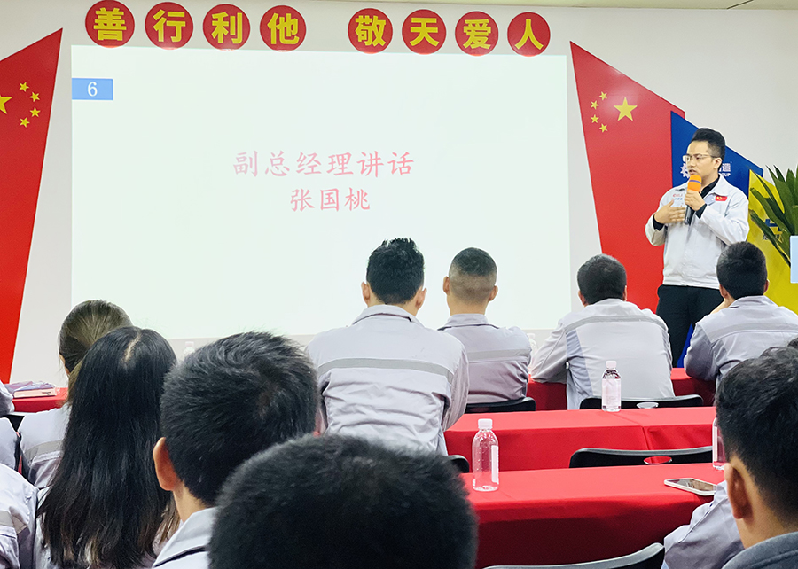常務(wù)副總經(jīng)理張國(guó)桃發(fā)表工作感言。張副總對(duì)2021年三季度工作進(jìn)行回顧,對(duì)公司業(yè)績(jī)的增長(zhǎng)表示肯定,分析了部分工作未完成的主要原因和關(guān)鍵要素,進(jìn)一步對(duì)后期工作作了如下要求:一、銷(xiāo)售致勝,業(yè)績(jī)?yōu)橥?,全員營(yíng)銷(xiāo),加大績(jī)效產(chǎn)出;二、強(qiáng)化客戶幸福指數(shù),為客戶創(chuàng)造效益;三、幫助新生力量,快速融入團(tuán)隊(duì);四、增強(qiáng)危機(jī)意識(shí),確保安全生產(chǎn);五、注重細(xì)節(jié)把控,強(qiáng)化責(zé)任意識(shí),并進(jìn)一步勉勵(lì)全體員工要做一個(gè)積極、有正能量的人,像太陽(yáng)一樣溫暖有光、有力量。